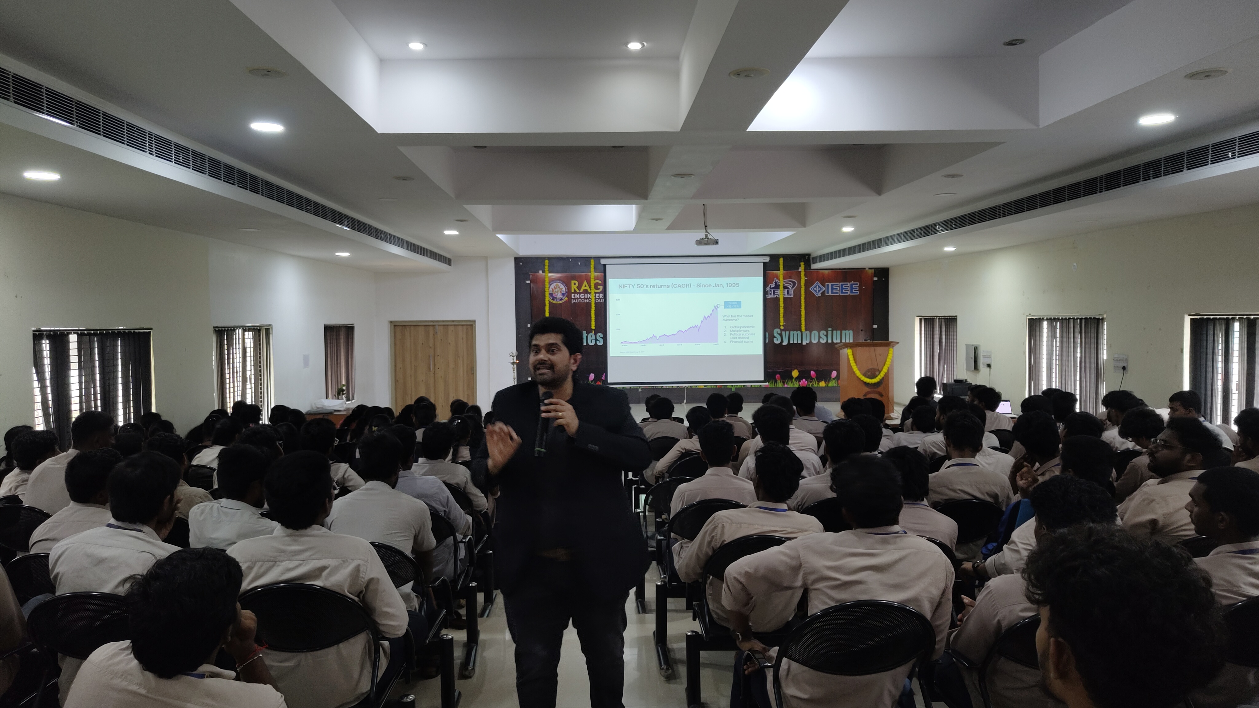 E-Cell REC hosted an engaging session on 'Basics of Investing & Riding the Market Rollercoaster,' led by capital markets expert Jay Mehta. The session covered market cycles, investment strategies, and fundraising essentials for startups. Students gained hands-on experience through paper trading, while also learning about pitch decks, valuations, and equity management. The event successfully bridged financial literacy with entrepreneurial skills, empowering students to think like investors and founders alike.